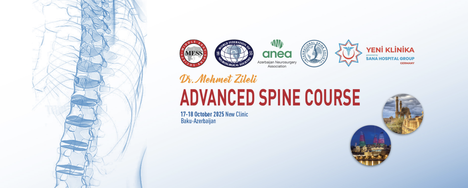 You are cordially invited to the Dr Mehmet Zileli Advanced Spine Course which will take place on October 17 - 18, 2025 in Baku, Azerbaijan.